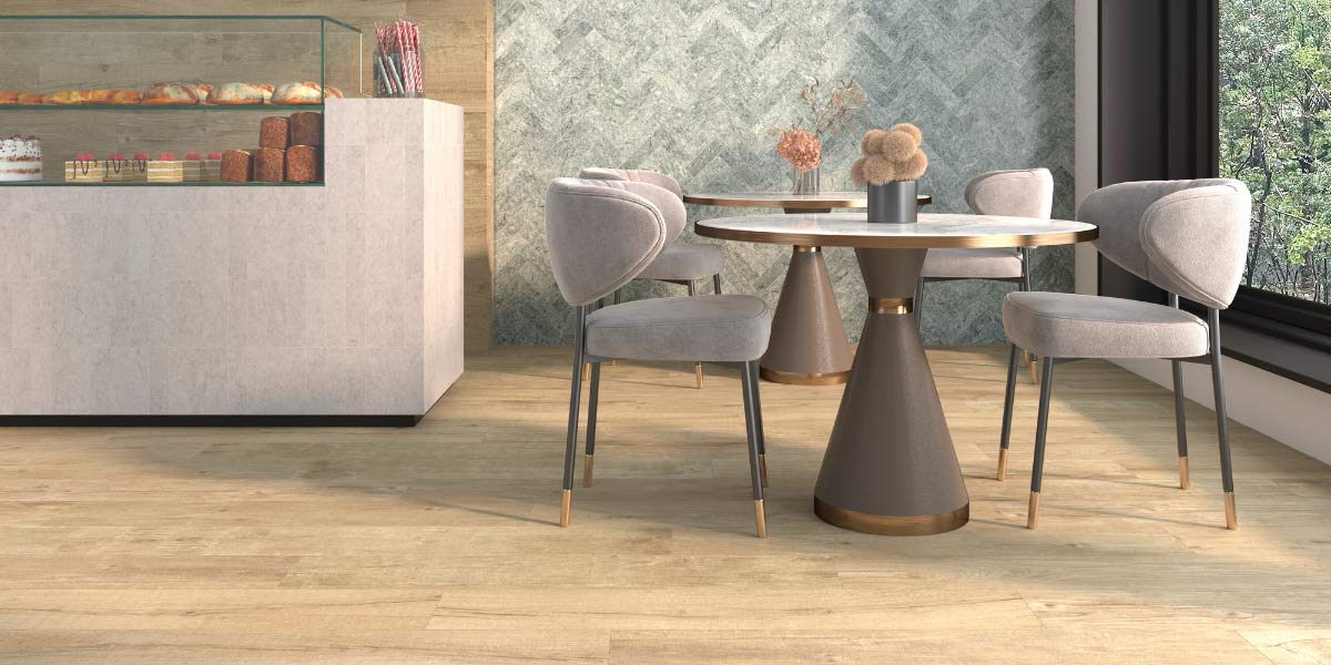 En espacios comerciales, como restaurantes, tiendas y oficinas, los azulejos de madera se están utilizando cada vez más. Esto se debe a que combinan la elegancia y la apariencia natural de la madera con la practicidad de un material que es fácil de mantener y limpiar. Los azulejos de madera son capaces de soportar un tráfico constante sin mostrar signos de desgaste, lo que los convierte en una excelente opción para áreas de alto tránsito.