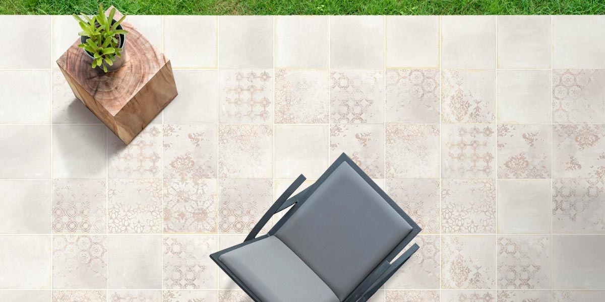 - Áreas exteriores. Perfectos para espacios al aire libre como terrazas y patios, gracias a su capacidad antideslizante. Su superficie rugosa disminuye el riesgo de resbalones, haciéndolos una opción segura para zonas húmedas y expuestas a la humedad.