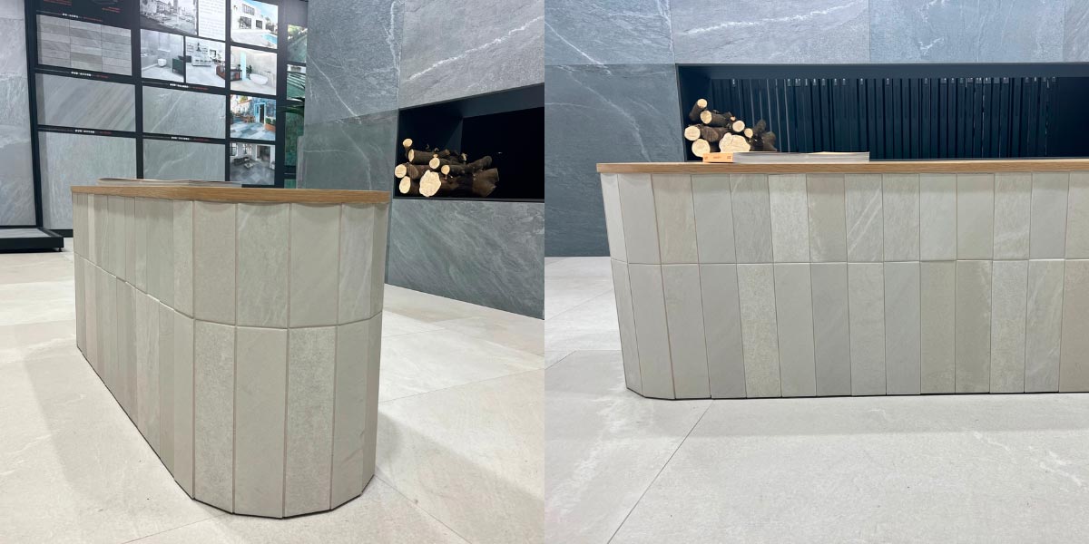Inspirada en la cerámica japonesa, nuestra serie Kit-Kat se enmarca en las últimas tendencias. Es una apuesta en firme por las curvas suaves, ya que uno de sus principales rasgos es que es muy fácil de utilizar en zonas curvas. A continuación, te dejamos algunos ejemplos de cómo queda revistiendo curvas y al final del post puedes ver el vídeo de cómo lo colocamos nosotros en nuestros showroom, tanto en curvas cóncavas como convexas.
