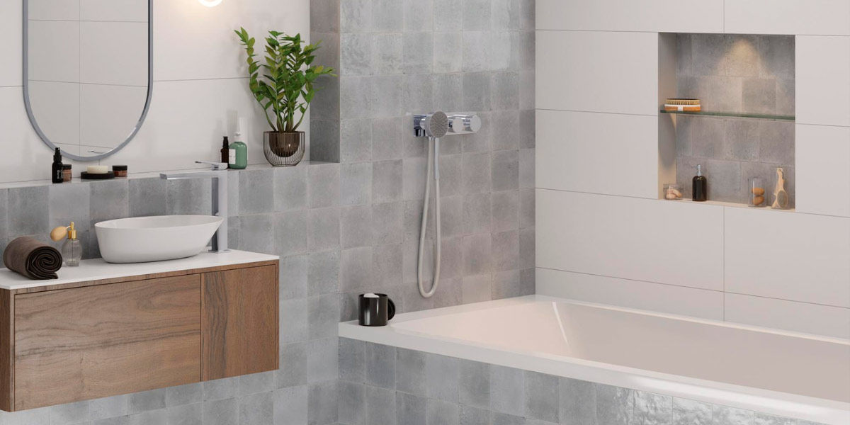 En baños reducidos, utilizar azulejos grises claros en formato pequeño o con acabados satinados asegura una estética actual y funcional, optimizando tanto el diseño como la percepción del espacio.