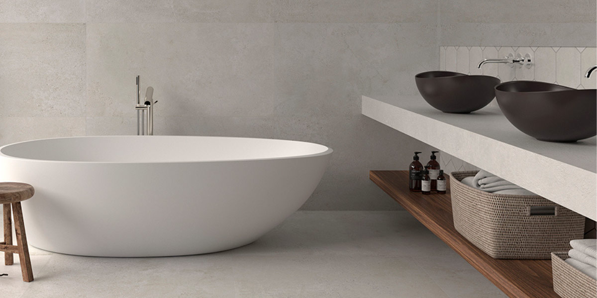 En cuanto al suelo, los tonos ligeramente más oscuros neutros que las paredes funcionan bien para dar una sensación de estabilidad y anclar el diseño. El contraste entre el suelo y las paredes ayuda a definir visualmente el espacio, sin que el baño pierda su amplitud.