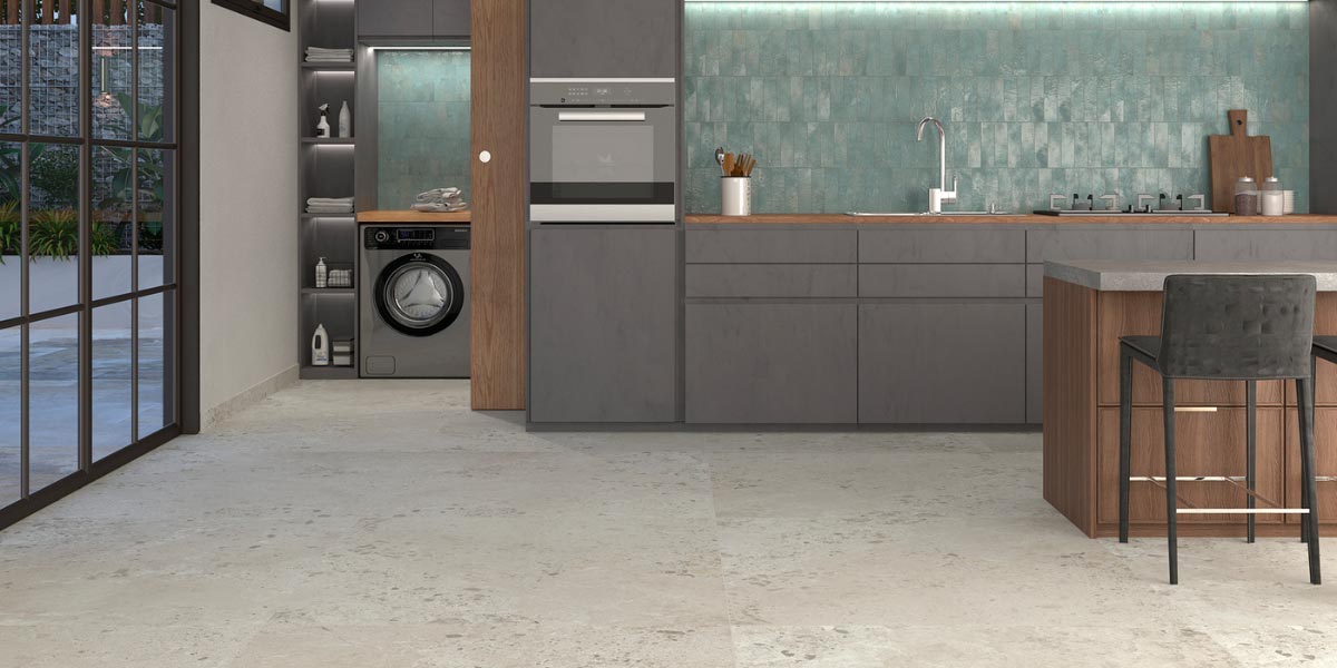 Der Einsatz desselben Keramikmaterials in Küche und Wohnbereich fördert nicht nur den einheitlichen Stil, sondern bietet auch praktische Vorteile: Haltbarkeit, leichte Pflege und Beständigkeit gegenüber täglicher Beanspruchung.