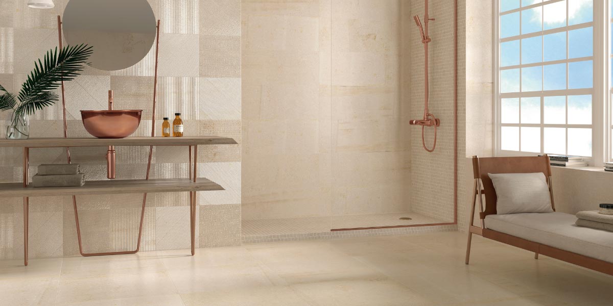- Duschen mit Naturstein- oder poliertem Zementeffekt. Wählen Sie rektifizierte Fliesen mit Oberflächen, die natürliche Materialien wie Stein oder Zement imitieren, um eine moderne und elegante Ästhetik zu erzielen. Durch die Verlegung mit wenig oder gar keinem Zwischenraum wird ein durchgehender Oberflächeneffekt erzielt, der die Textur des Materials hervorhebt und den Raum optisch aufwertet.
