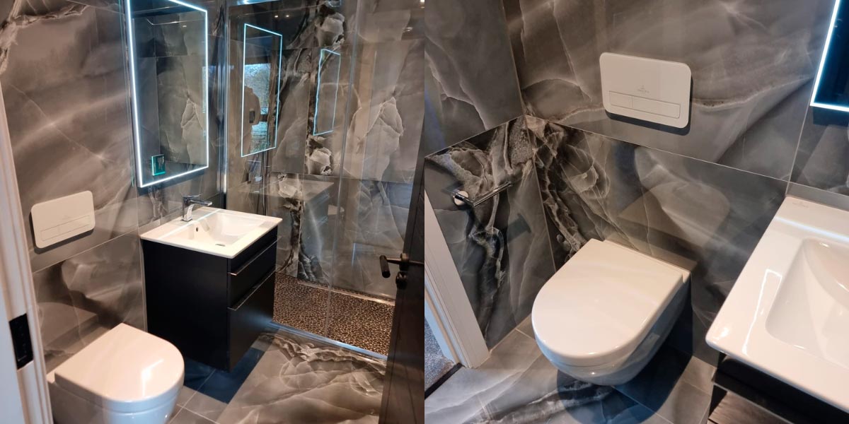 - Ein Gefühl von Großzügigkeit. Da keine sichtbaren Fugen vorhanden sind, wirken die mit fugenlosen Fliesen gefliesten Räume breiter und heller. Dies ist die perfekte Lösung für kleine Bäder oder Räume, die ein Gefühl von Raum gewinnen sollen.