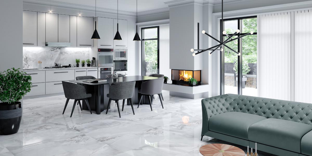In Küchen sorgen fugenlose, rektifizierte Fliesen für einen modernen und sauberen Touch, ideal für Arbeitsplatten, Aufkantungen und ganze Wände. Ihre einheitliche Oberfläche verbessert nicht nur die Ästhetik, sondern ist auch hygienischer, was in Bereichen, in denen Lebensmittel zubereitet werden, besonders wichtig ist.