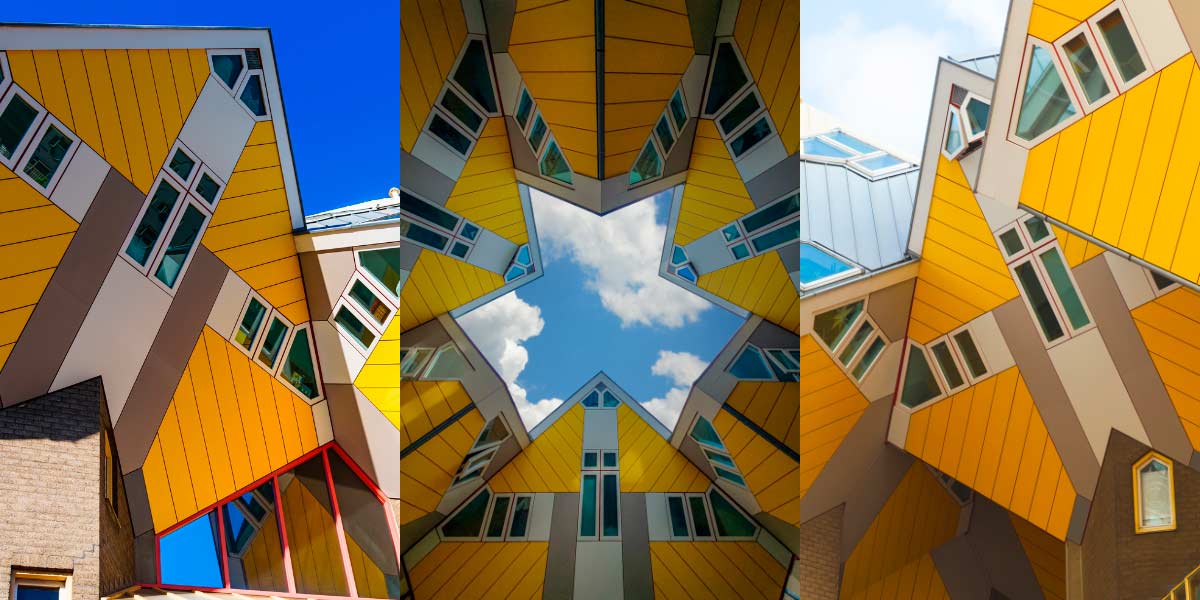Würfelhäuser. Rotterdam. Entworfen vom Architekten Piet Blom, hat sich diese einzigartige städtische Entwicklung zur touristischen Attraktion par excellence der niederländischen Stadt entwickelt. Sie wurden in den 1970er Jahren gebaut und fallen zweifellos durch ihre Formen auf, die die Gesetze der Logik herausfordern und sie zu wahren Ikonen gemacht haben.