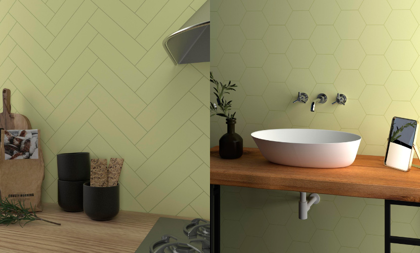 Angefangen mit den einfachsten Produkten, haben wir die Kollektionen Flat Mustard Matt und Exa Mustard. Die erste, 7,5x30cm, wurde entwickelt, um monochromatische Räume zu schaffen und mit der Platzierung zu spielen, wodurch sie sich perfekt an alle Räume anpasst. Ob Küche, Bad, Wohn- oder Schlafzimmer, diese Serie passt sich an jeden Einrichtungsstil an. Die zweite Serie ist eine sechseckige Feinsteinzeugfliese, ein Trendformat in der Keramik, das ideal ist, um Böden und Wänden eine einzigartige und kreative Note zu verleihen.