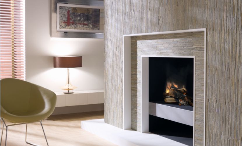 Fliesen in Natursteinoptik sind leichter und einfacher zu handhaben als echter Naturstein und lassen sich daher einfacher in Ihren Kamin einbauen. Darüber hinaus erfordern sie keinerlei Versiegelung oder zusätzliche Wartung.