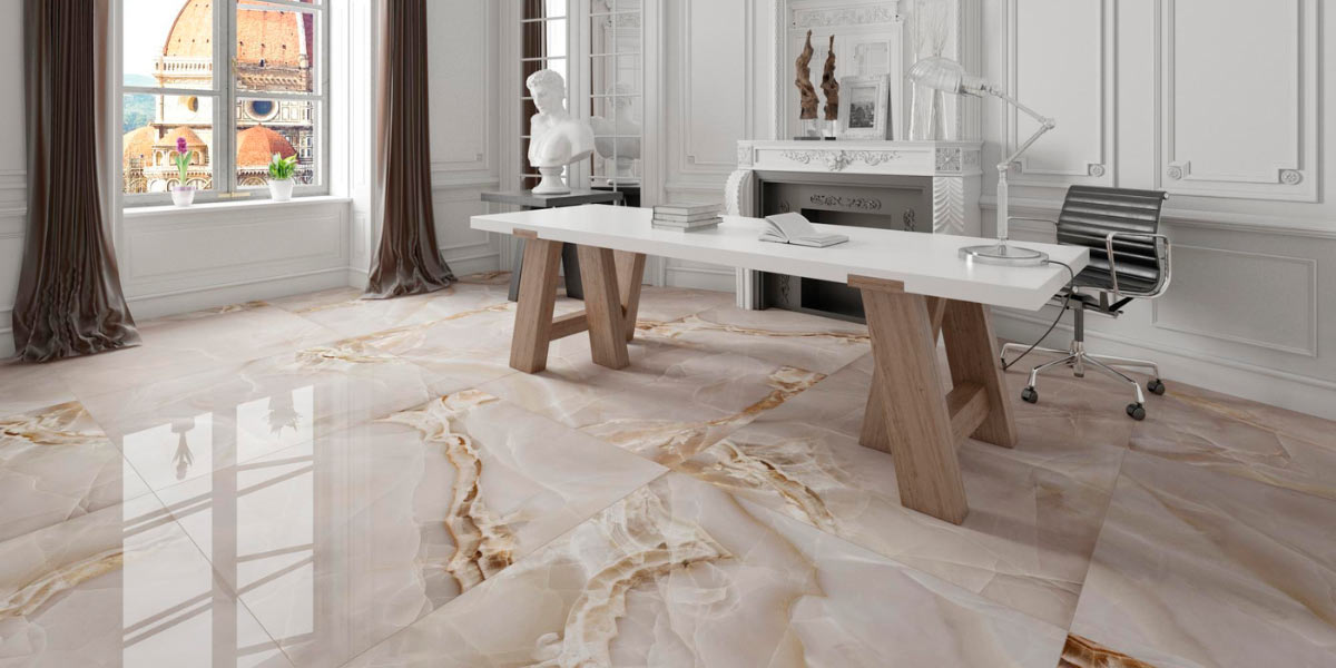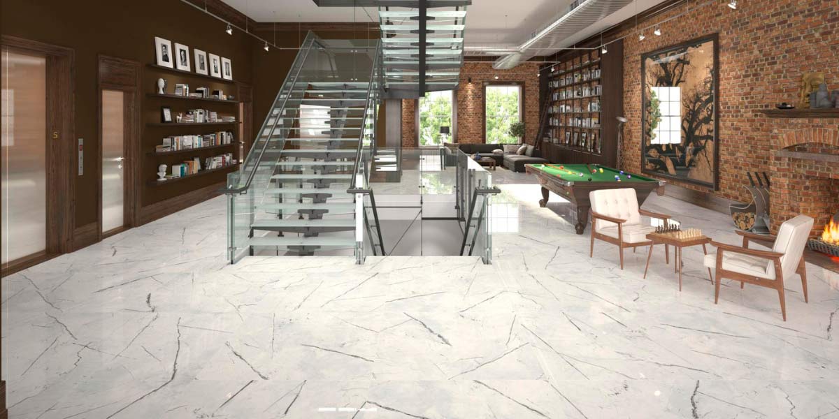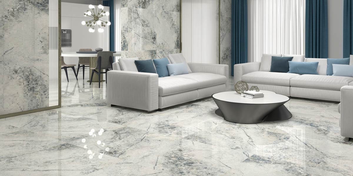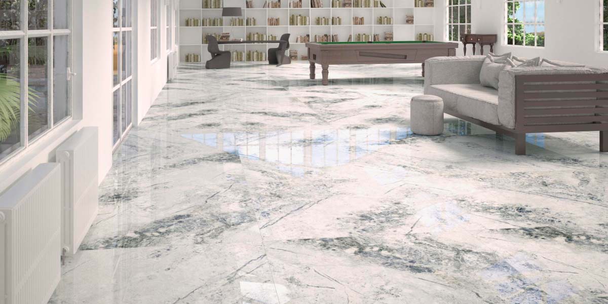Oberflächenveredelungen von großformatigen Marmoroptikfliesen