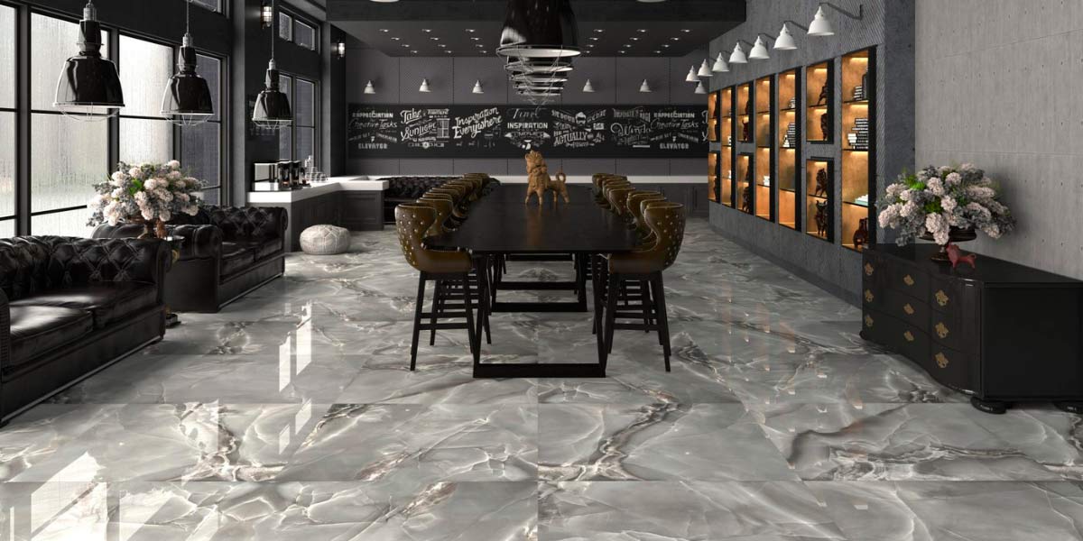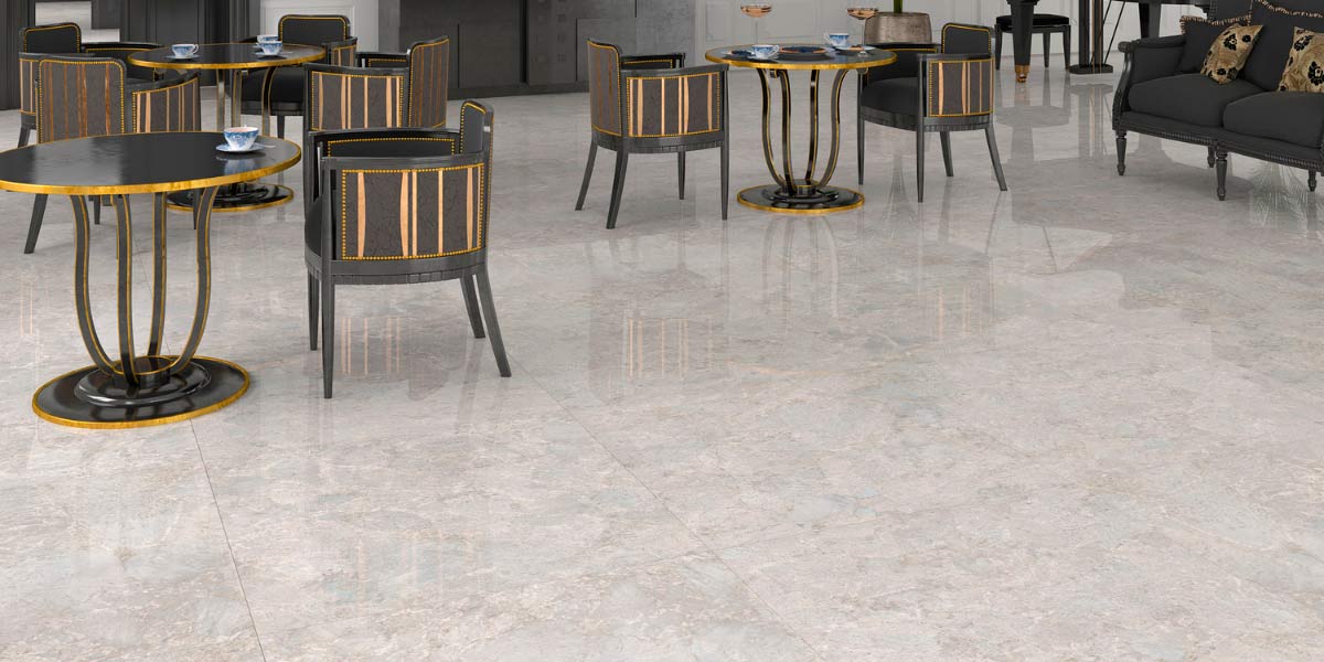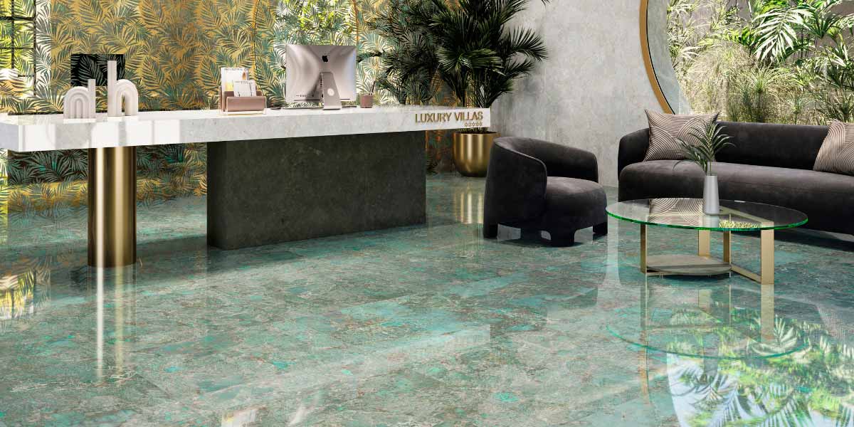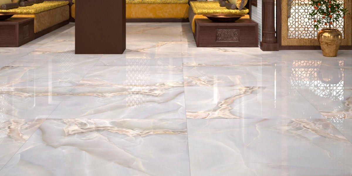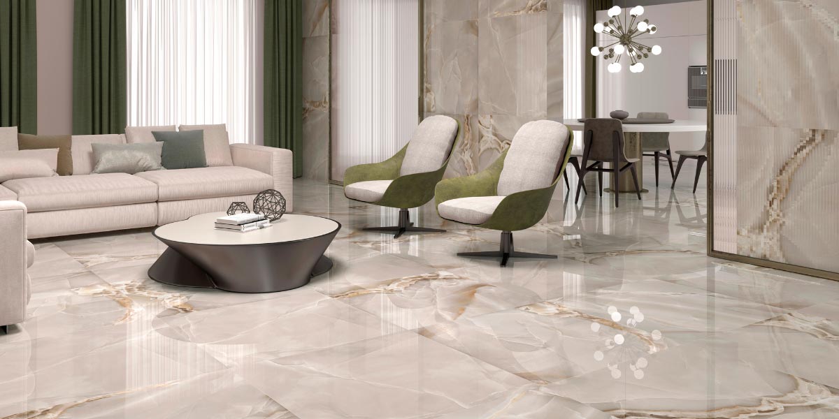 Oberflächenveredelungen von großformatigen Marmoroptikfliesen