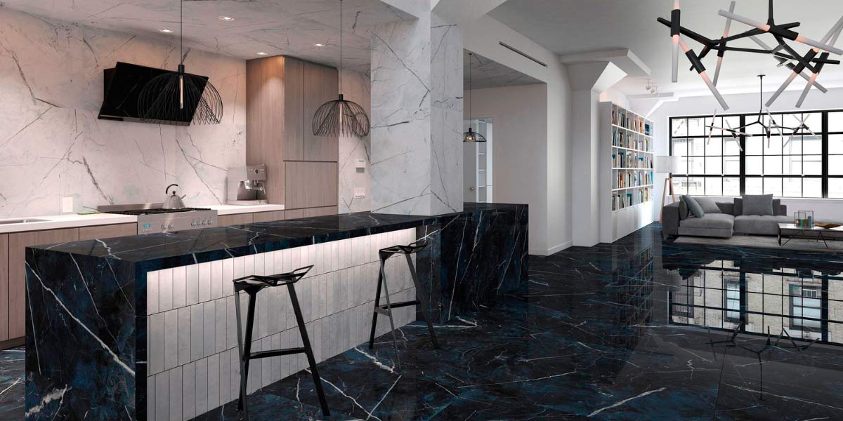 Im Laufe der Zeit und dank der Entwicklung industrieller Techniken ist es der Keramik gelungen, die Schönheit von Marmor in vielseitigen Stücken mit höchster Leistung einzufangen. Aus diesem Grund ist Porzellanmarmor zunehmend die beste Wahl für die Dekoration eines Wohnzimmers, da er Eleganz, Raffinesse und Nüchternheit vermittelt.
