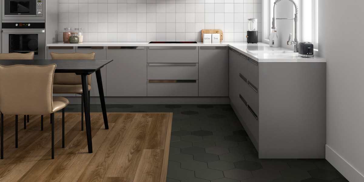 Vinylboden in Holzoptik für die Küche ist eine immer häufiger genutzte Alternative zu anderen traditionellen Bodenbelägen. Im Gegensatz zu Parkett sind SPC-Vinylböden zu 100 % wasserfest, wodurch sie in Bereichen eingesetzt werden können, in denen Feuchtigkeit, Spritzwasser oder Temperaturschwankungen auftreten können.