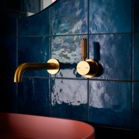 Im tiefblauen Bad setzt Immaculate Homes auf ein ebenso attraktives Farbschema, allerdings in anderen Tönen. Hier verleiht unser Agadir Lago mit seiner satten, umhüllenden Farbe dem Raum eine starke Persönlichkeit. Die Unregelmäßigkeiten im Glanz der Fliesen verleihen dem Raum einen handwerklichen Touch, der mit der modernen Präzision der Armaturen kontrastiert.