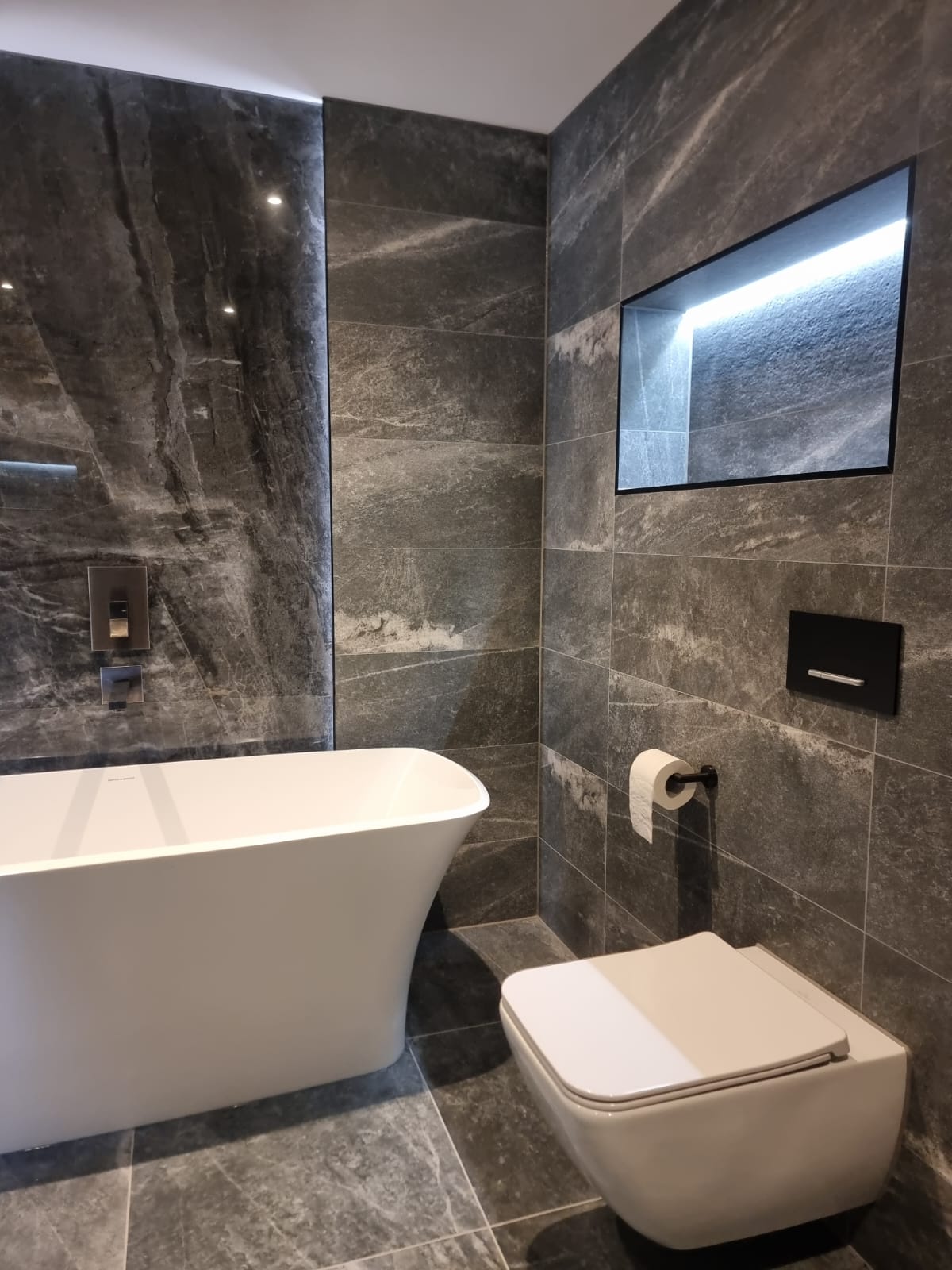 Die Modernität findet in Naturstein einen klaren Verbündeten. Diese Art von Produkt mit seinem rauen und robusten Aussehen schafft Räume, in denen der zeitgenössische Stil dominiert. LPM Bathrooms & Tiles präsentiert dieses Badezimmer in einem Privathaus. Darin zieht die Serie Karakter alle Blicke auf sich und erfüllt die Funktionalität des Raums.