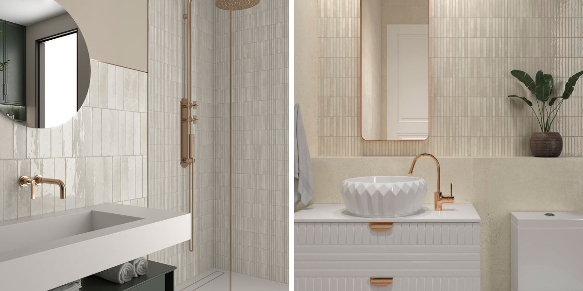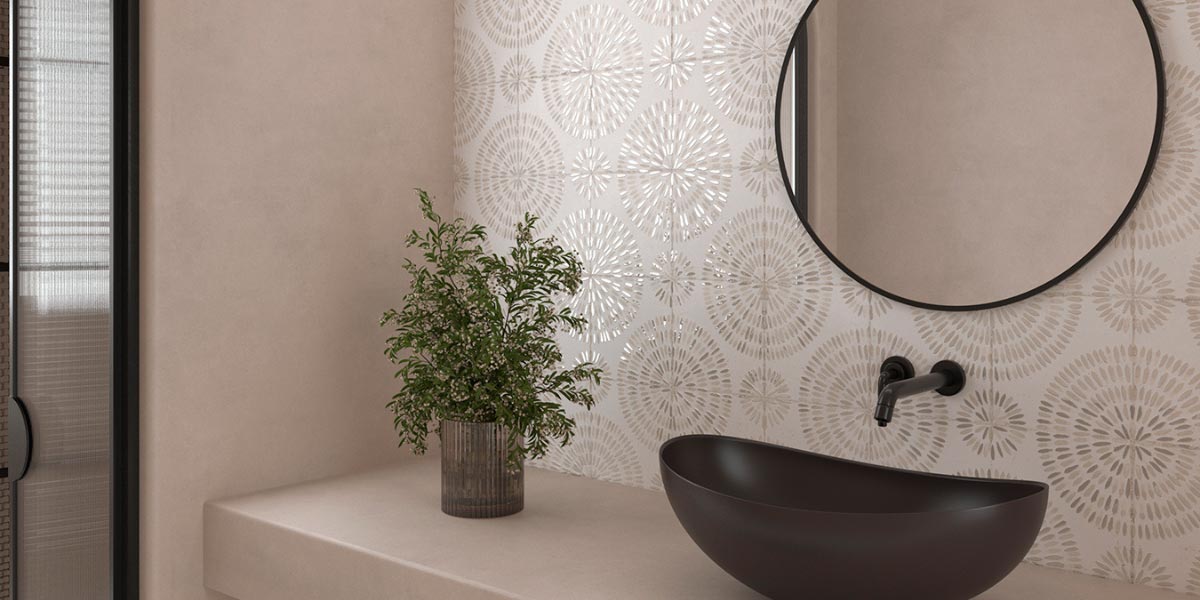 Beige is transformed by playing with different textures. A matte floor can be enhanced with glossy wall tiles, creating a subtle play of reflections that amplifies the light. Likewise, 3D reliefs or artisan-effect pieces introduce movement and depth without the need to add more color.