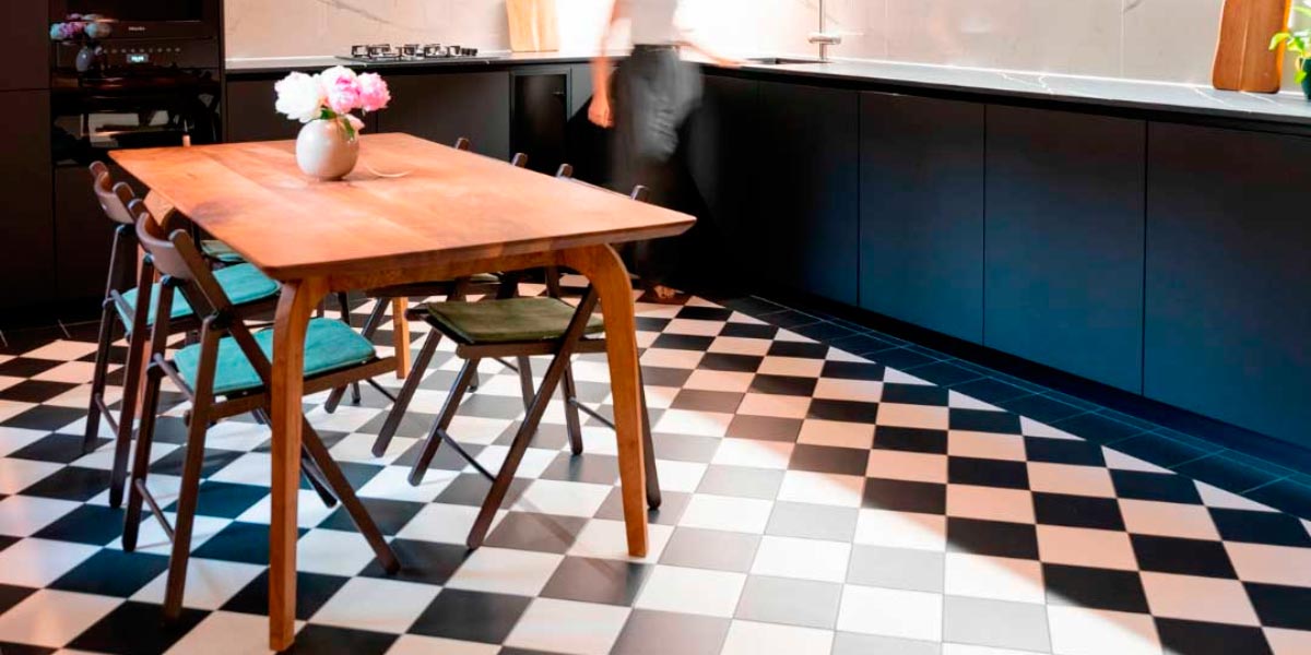 In premium kitchens, this duality goes beyond the practical and becomes a highly impactful aesthetic resource: black ceramic countertops with polished finishes, white mosaic backsplashes with contrasting grout, or checkerboard floors reinterpreted in a contemporary way. Together, these create kitchens that not only meet the demands of intensive use but also convey distinction and modernity.
