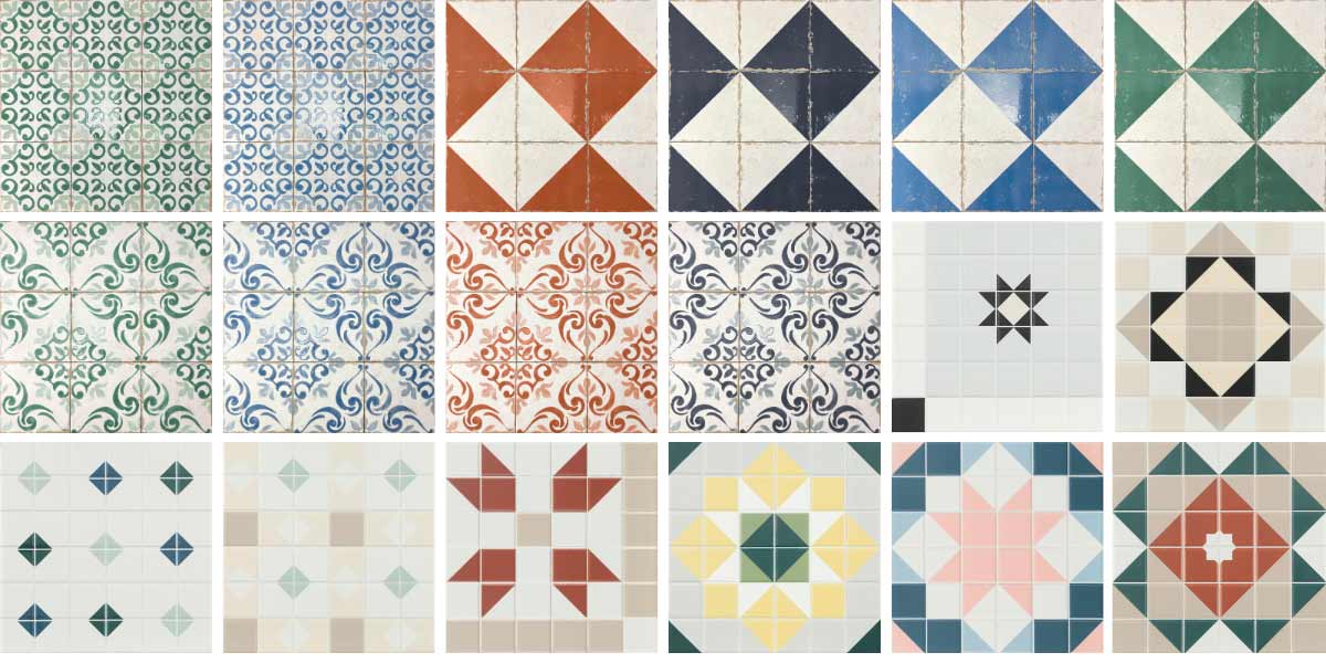 One of the greatest strengths of hydraulic tiles is their rich visual appeal, achieved through today’s innovative production techniques. Available in a wide range of geometric, floral, arabesque, or classical motifs, they allow for decorative compositions ranging from the most traditional to the most contemporary.