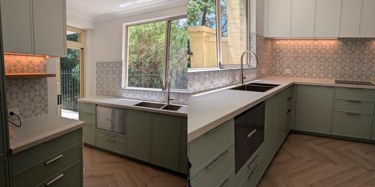 Hydraulic tiles for small kitchens are distinguished by their geometric patterns and vibrant colours, which can give life and character without visually overloading the room. Terrazzo tiles, on the other hand, offer a texture and mix of colours that add warmth and sophistication, ideal for creating a vintage yet modern atmosphere.