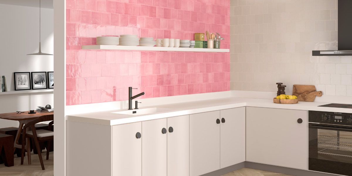 Incorporating bright colours such as green and pink into tiles for small kitchens is a great way to bring a fresh and original touch to the space. These tones, when used in moderation, can transform a small kitchen into a place full of personality and energy without visibly saturating the room.