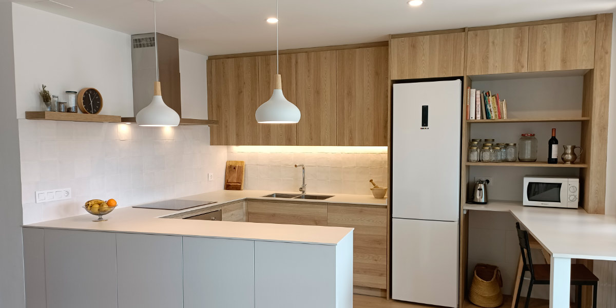 The Nordic style is perfect for small kitchens as it combines simplicity, functionality and a fresh aesthetic that maximises natural light. In this style, tiles for small kitchens play an essential role in creating a warm, bright and welcoming atmosphere. One of the most outstanding options are wood-effect tiles, which provide a natural and organic texture, typical of the Nordic style, without losing the advantages of durability and ease of maintenance offered by ceramic tiles.