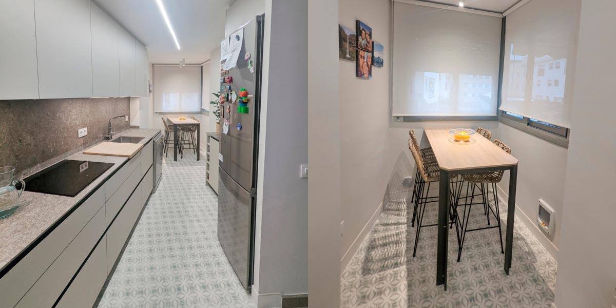 For those looking for a design with charm and personality, vintage style in small kitchens is a perfect option that combines nostalgia and functionality. Tiles for small kitchens with a hydraulic or terrazzo effect are protagonists in this style, as they provide that characteristic retro touch that transforms any space into a cosy atmosphere full of history.
