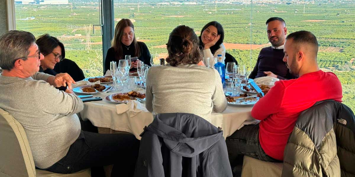 After the professional visit, the journey continued at one of the most emblematic restaurants in the province of Castellón: La Muntanyeta de Sant Antoni in Betxí. There, our Italian distributors enjoyed an exceptional lunch with even more exceptional views.