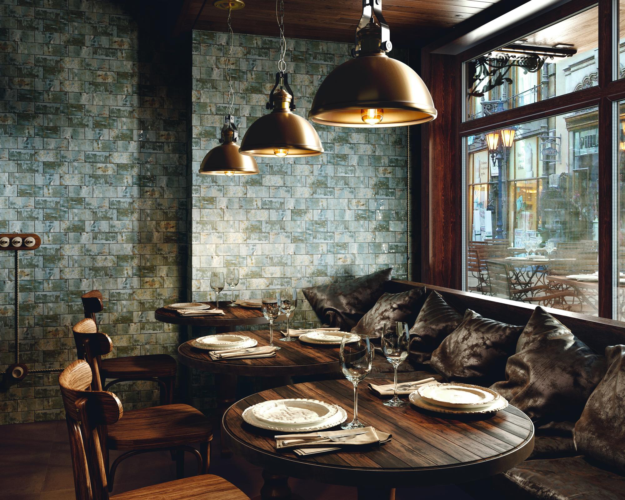 This ceramic mosaic imitates the appearance of one of the world’s most famous monuments, the Statue of Liberty, simulating the greenish weathered tones of oxidised copper.