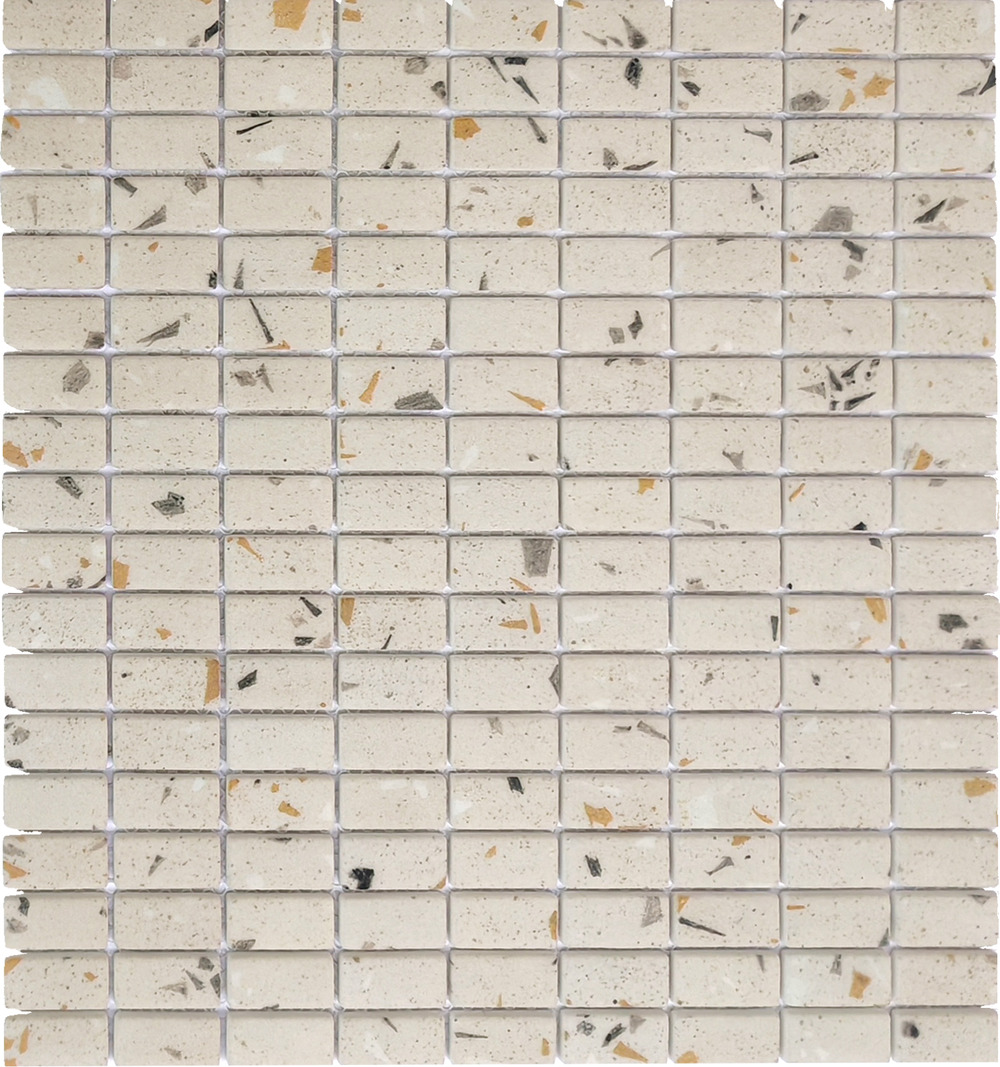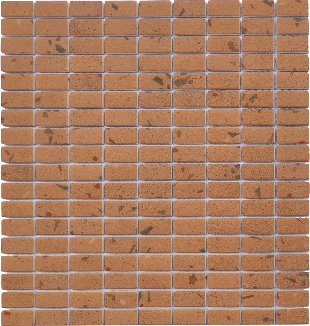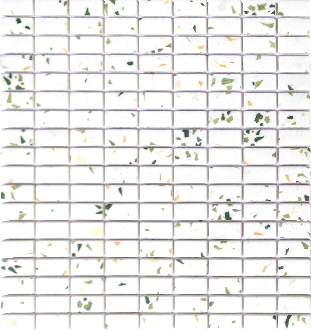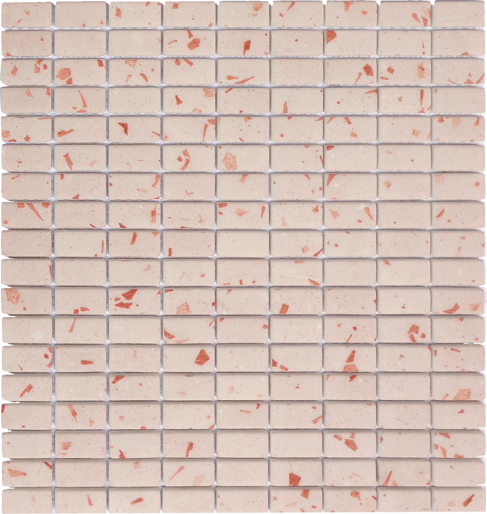 Glass mosaic in a 28,6x30,5cm format that precisely reproduces the aesthetic of the Fragmenta Coral tile, adapting it to a tessellated format. Over a soft, powdery base, reddish fragments appear to float, evoking the spontaneous stroke of a brush. Its cheerful and delicate tone makes it an ideal choice for adding color with subtlety. This piece is suitable for flooring, even in wet areas.