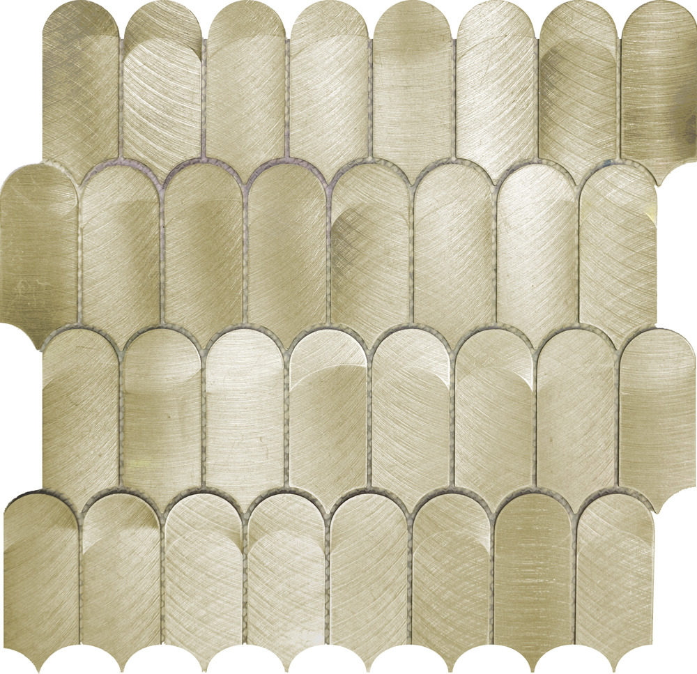 In this light golden tone, the Scale mosaic conveys a sense of luxury and sophistication, making it perfect for elegant and timeless spaces. Thanks to its striking design and durability, it is ideal as a decorative wall...