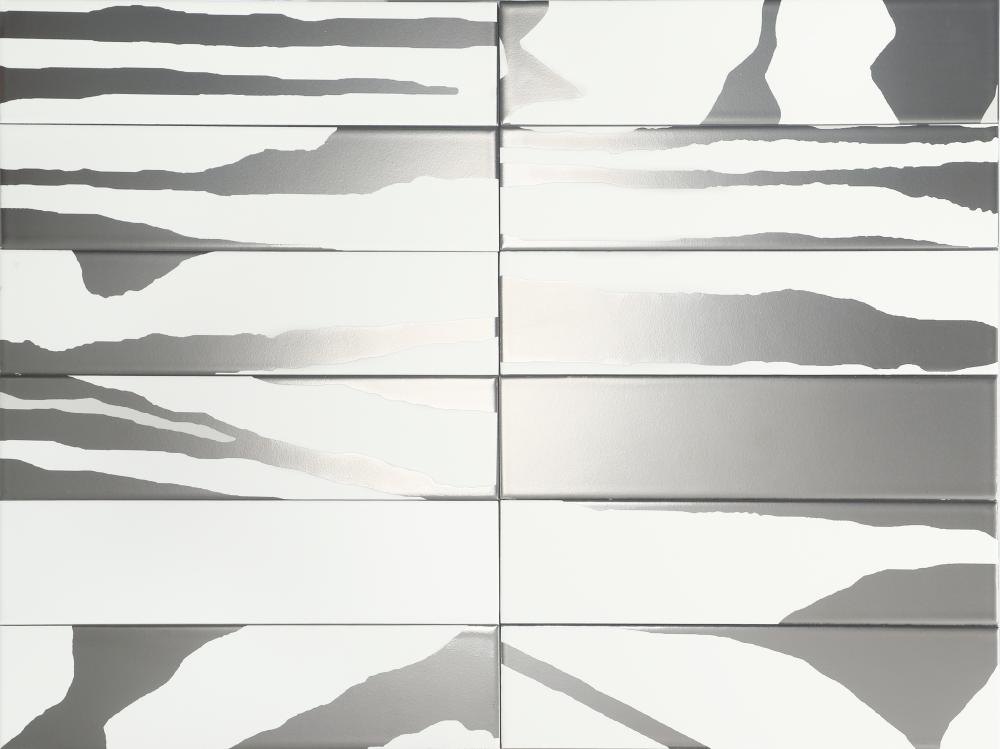 DUNE presents the new iridescent wall tiles FLAT IRIS SATIN, with a soft pearly chromatic variation and FLAT RAINBOW whose marked color variation goes from pink to blue through yellow. Both are made with a unique technology that makes the composition of each box completely random. Combined with the FLAT WHITE...