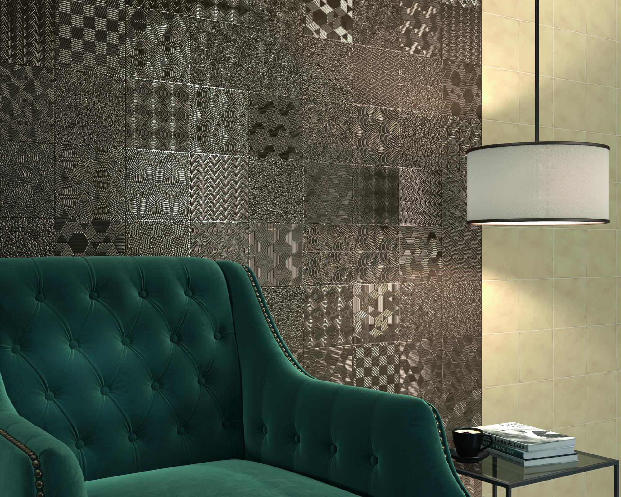SHINE is a set of 8 tiles with micro-reliefs where the metallic glaze rests on their smooth geometric shapes and interacts with the light, creating an appealing play of light and shade. Just a small number of these is enough to make a room feel vibrant and modern.