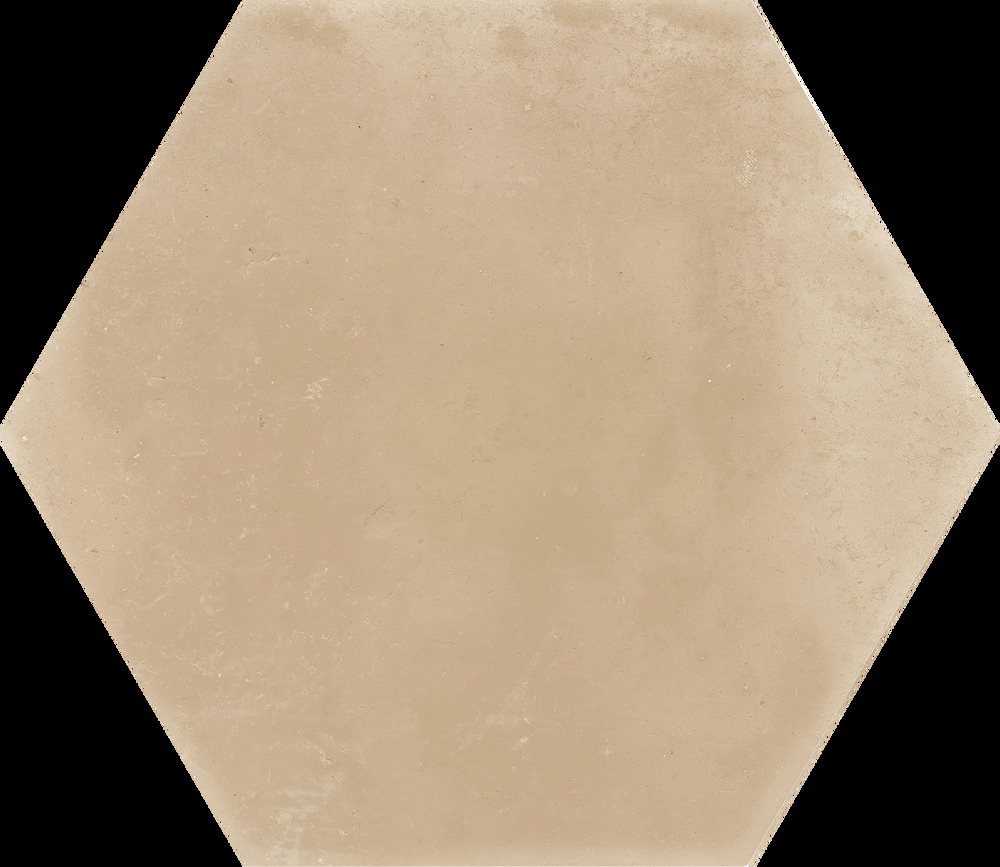 In the 21.5×25 cm hexagonal format, this porcelain tile stands out for its watercolor-inspired Wheat tone and Soft&Safe finish, which ensures safety on wet floors while offering a silky and pleasant touch. This shade allows for a smooth and nuanced installation, maintaining the chromatic continuity of the space. Perfect to combine with the wall tiles from the same series to achieve discreet elegance.
