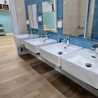 For the renovation of this center affected by the DANA storm, the nursery school chose our SPC flooring, as it combines aesthetics, durability, and practicality, while perfectly aligning with the pedagogical principles of Montessori education.