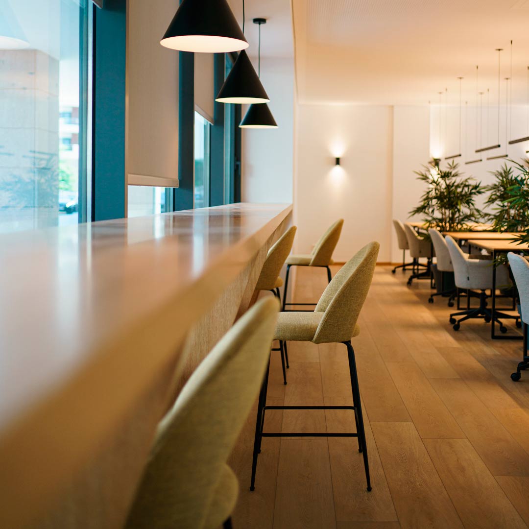 In this sense, the continuous use of the same flooring throughout the spaces provides a strong visual identity to the project. This coherence not only reinforces a sense of openness and connection between environments, but also conveys order and serenity—key to the residents’ well‑being. At Paços da Prelada Evo, interior design is not an afterthought but a tool for improving quality of life. Thanks to our SPC vinyl flooring, each space gains in personality, functionality, and comfort. This project is a clear example of how the floor can be the thread that ties aesthetics, usability, and emotion into a single place.