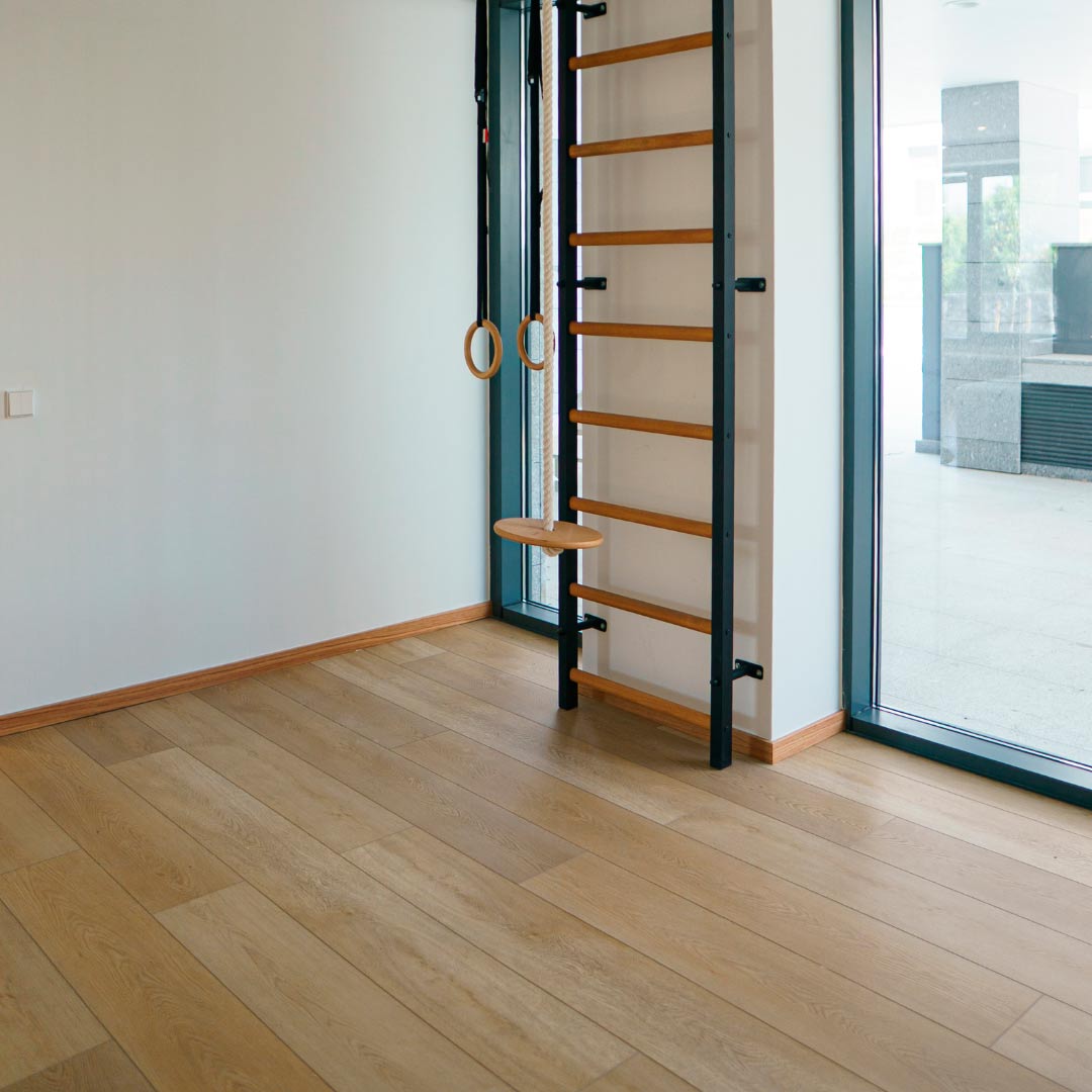 The zones dedicated to youths and children, including study and exercise areas, required flooring that combined durability and safety—and our SPC vinyl fully delivers: its surface is non‑slip, easy to clean, and sufficiently resistant to physical activity, as evidenced in the area equipped with climbing bars and rings.