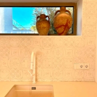 This project stems from a collaborative effort between the interior design/decoration company Studionumerocinco from Sabadell and the commercial department of Bigmat Calvente Sabadell. The result is a kitchen that conveys warmth, serenity, and a Mediterranean touch that pays homage to the coastal town in which it is located.