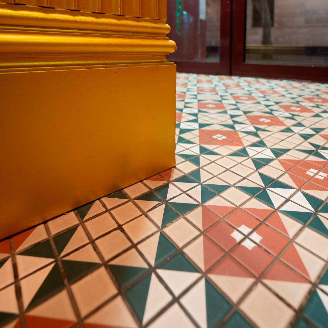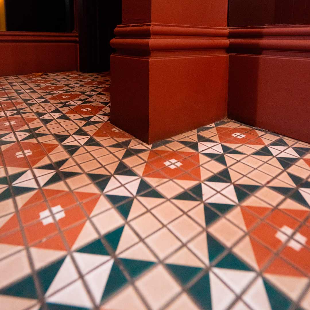 The bet they have made for this reform is a winning combination, our Flat and Mintons tiles, two series that were born to combine with each other, and that we clearly see an example of it in this project. Specifically, Balmoral and Flat Garnet Matt create a unique and visually powerful atmosphere to offer customers more than just a simple dining experience.