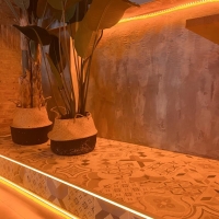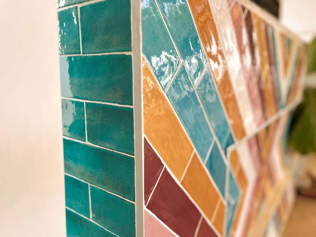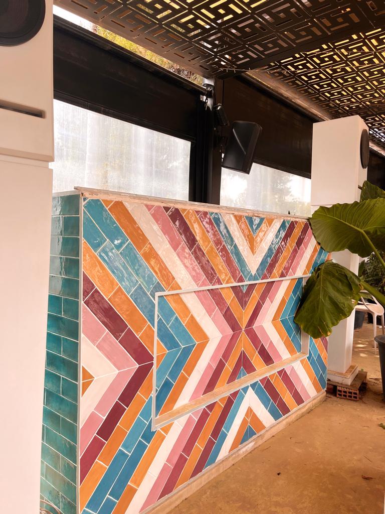 In all the exterior zone, where the terrace and chill-out zone are located, the Tabarca collection tiles assume prominence to attract attention from the DJ cabin. Tile collocation, combining colours and disposal, generates a visual effect that potentiates the space. Likewise, for all the bar zone, the Emporio collection tiles achieve to create a calm sense and hand the stage to the colourful bottle rack.