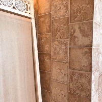 Similarly, it has wanted to project the connection between the environment and nature sensation in bathrooms. To achieve it, the Agadir Selva collection tiles and Agadir Cotto Claro tiles are combined with decorative rustic-style elements and, thus, generate a savage effect.