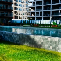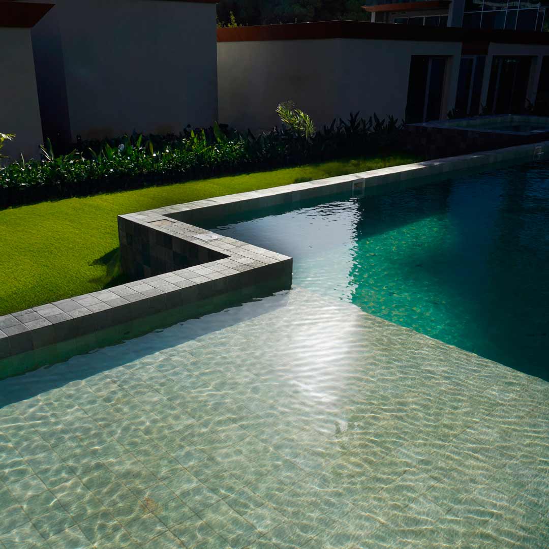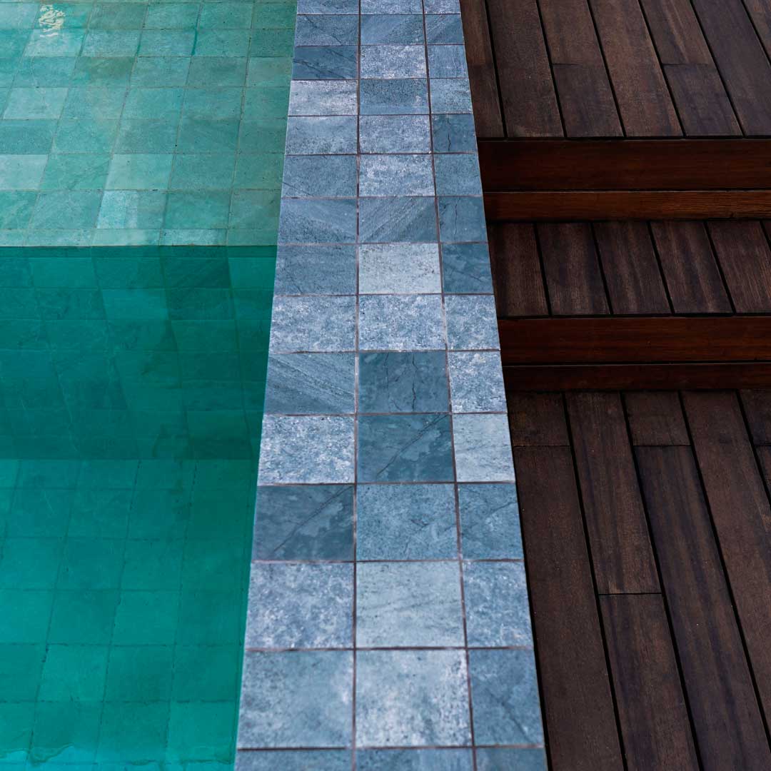 This exclusive residential complex stands out, without a doubt, for its spectacular pool with contemporary geometry, clad with our Bali Verde tiles. A play of light, depth, and nuances that evokes turquoise waters.