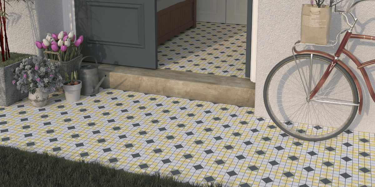 Si vous recherchez une approche plus décorative, les carreaux de type hydraulique sont une excellente option pour revêtir les murs extérieurs avec du caractère.