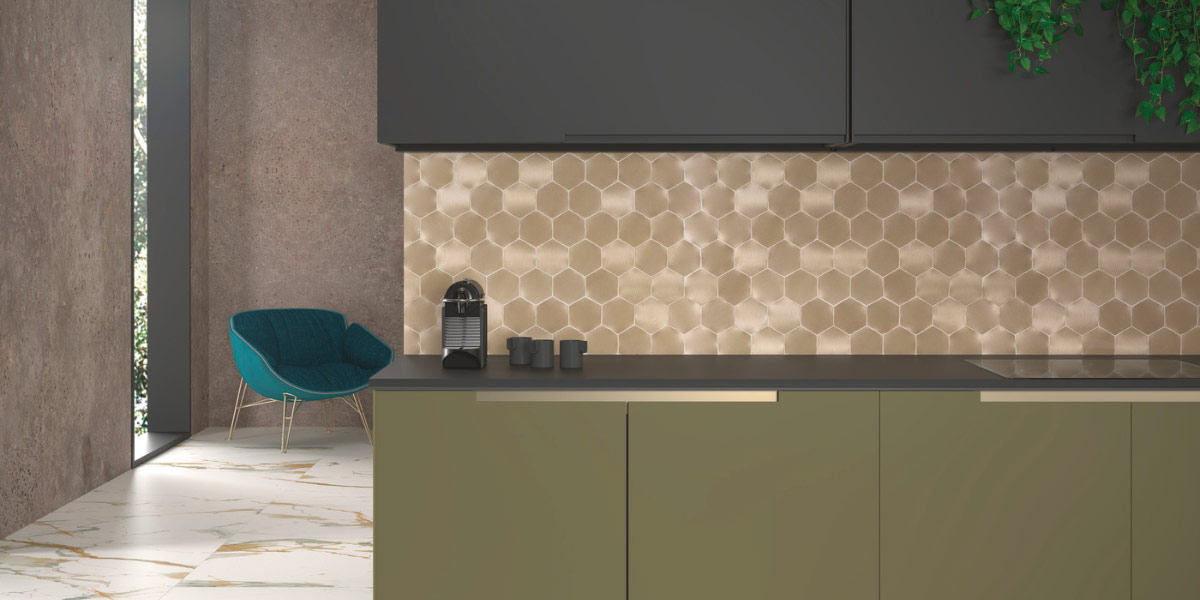 - Cuisines modernes → mosaïques géométriques, hexagonales ou métalliques