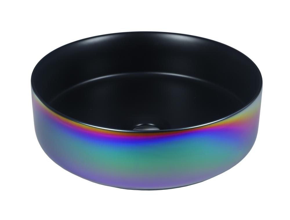 Lavabo élégant en porcelaine avec intérieur blanc brillant et extérieur doré satiné, parcouru de petites lignes qui réagissent à la lumière. Donnez à votre projet résidentiel ou contract la touche finale pour les salles de bains sophistiquées et...