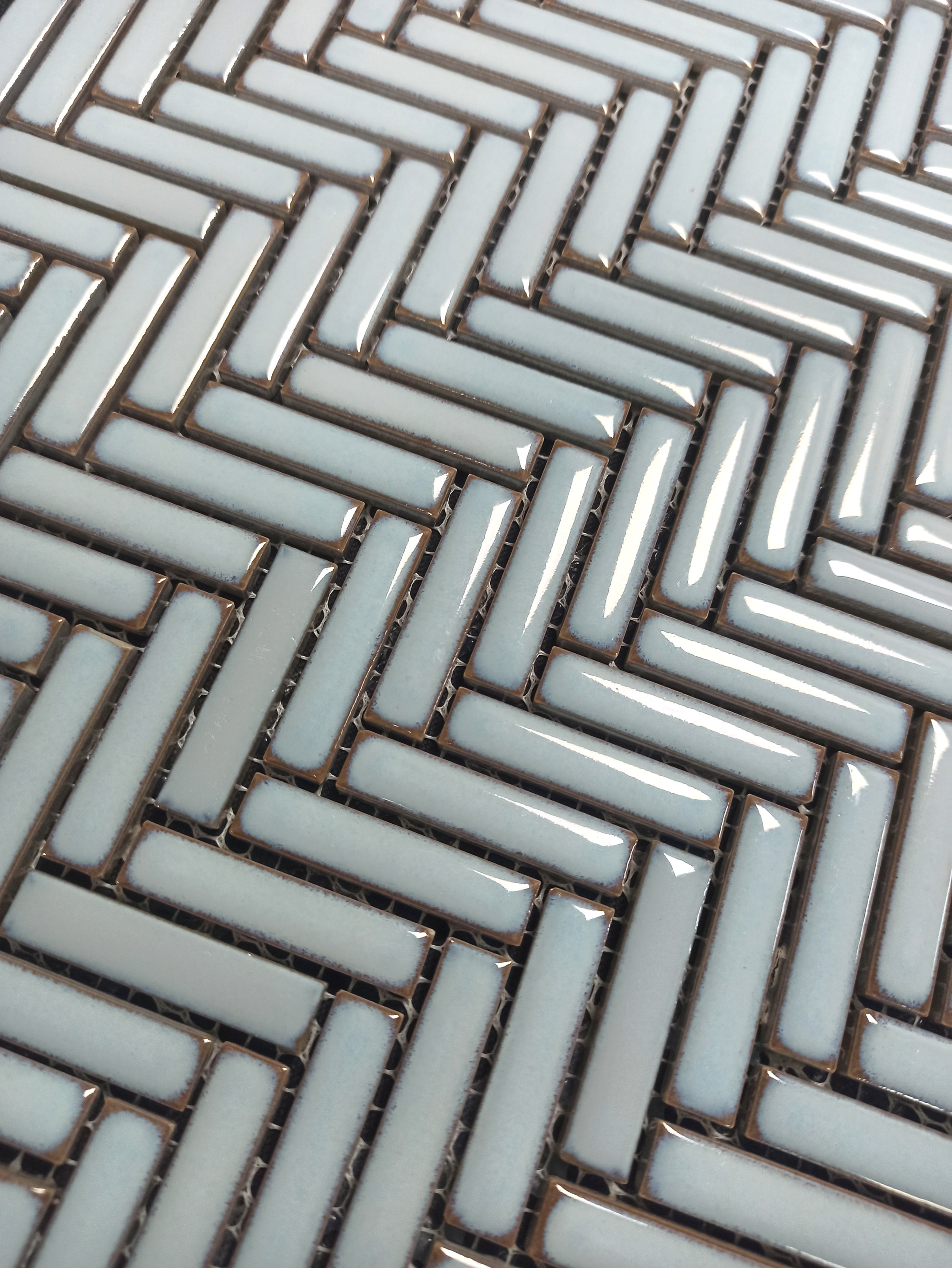 ELLE est une mosaïque fabriquée en grès cérame avec un émail réactif qui permet à chaque tesselle d’avoir sa propre personnalité. Un design basé sur l’esthétique de la céramique japonaise, sobre et élégante, à bâtons rompus.