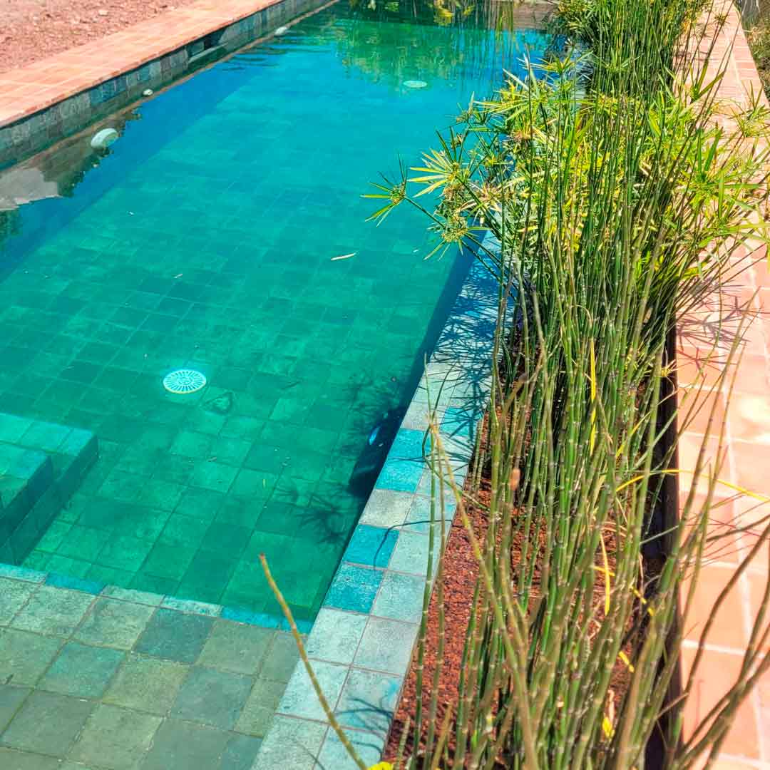 Cette piscine offre une expérience de baignade totalement saine, sans produits chimiques agressifs. Grâce à un système de purification naturelle et à un design intégré à la végétation indigène, on obtient un micro-écosystème qui purifie l'eau de manière organique.