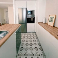 La clave está en utilizar tonos neutros, un diseño elegante y un suelo con personalidad, que acapara todas las miradas. Y es que, tal y como indica la propia interiorista, “con un diseño sencillo y un suelo bien escogido, se puede lograr un ambiente sofisticado y moderno”. Los suelos, tanto de la cocina como del baño, que utilizan Canterbury y Catalina respectivamente, son el punto focal de una decoración que apuesta por el blanco y la madera.