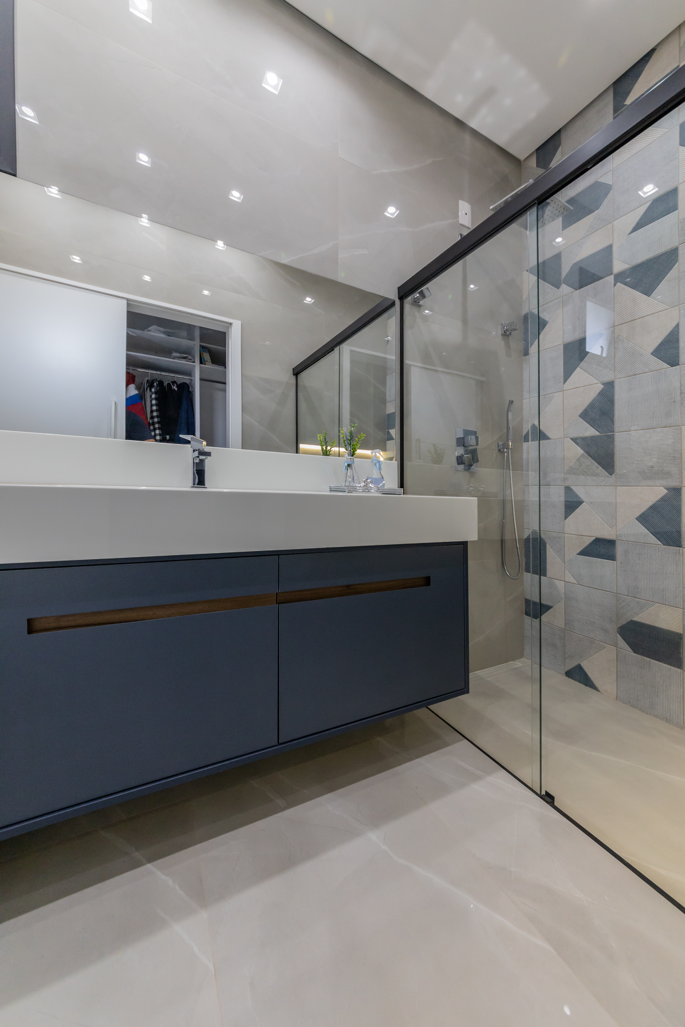 Les architectes d'intérieur Marta Rangel et Amanda Miranda, du studio M.A. Arquitetura e Design, ont signé ce projet de design résidentiel dans lequel les carreaux occupent une place centrale. En ce sens, les designers ont choisi la pièce Stripes Mix Denim pour créer une atmosphère inédite qui ne laisse personne indifférent.
