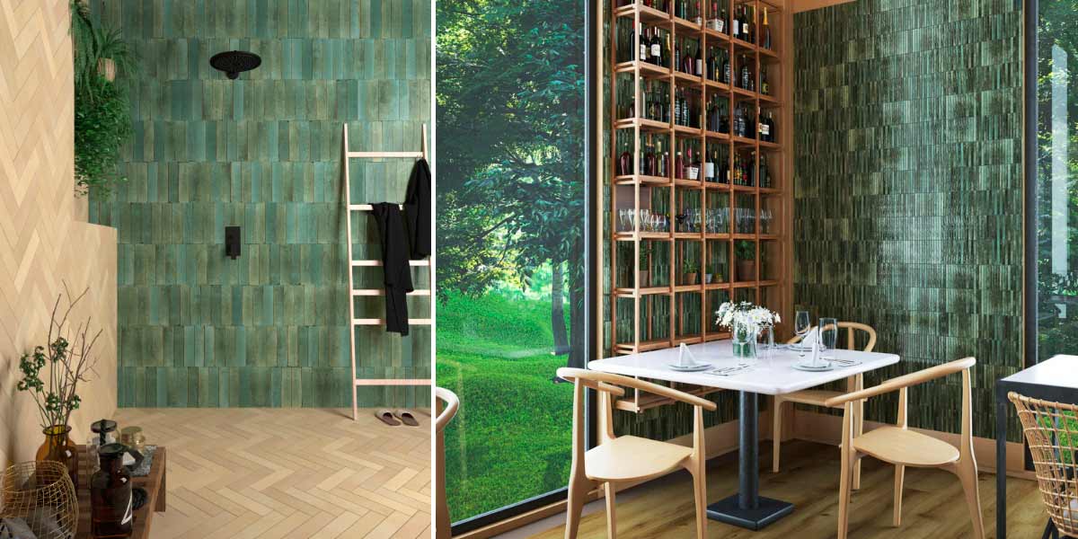 Le piastrelle verdi profondi saranno anch'esse ampiamente utilizzate nei rivestimenti delle pareti, specialmente in bagni e cucine dove si vuole evocare una sensazione di freschezza e natura. Le texture e le finiture opache esaltano l'eleganza di questi toni, mentre le superfici smaltate aggiungono un tocco contemporaneo.