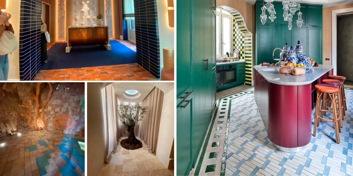 Uno degli spazi più chiacchierati è stato il "Baño de dos. Energia vibrante", di Blanca San Martín per Jacob Delafon. In esso, il pavimento in gres porcellanato che imita il cotto fornisce una base calda e vibrante, rafforzata dai colori dell'argilla sulle pareti e sui tessuti. Questo tipo di piastrelle evoca i cortili mediterranei e i pavimenti tradizionali delle case rurali, ma con un design lucido e sofisticato.