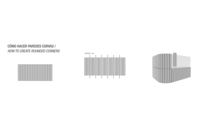 - È modulare: Oltre a poter essere installato in orizzontale o verticale, è possibile combinare entrambe le orientazioni lasciando uno spazio di 2 mm tra le piastrelle.